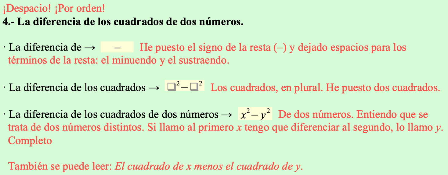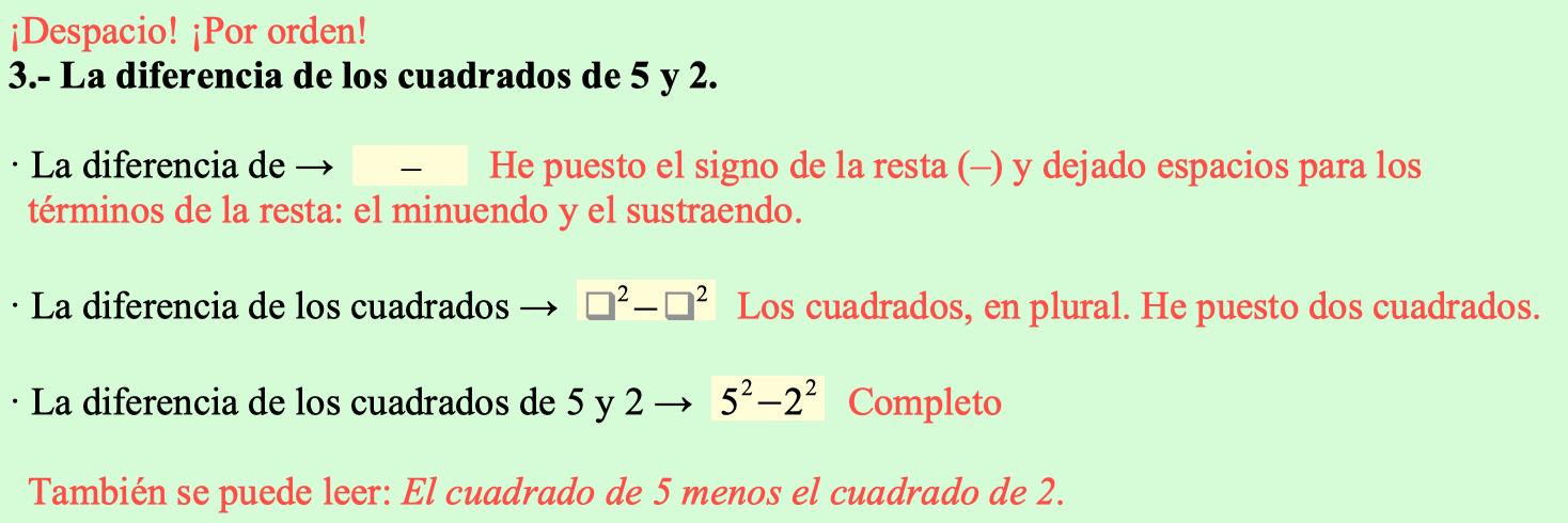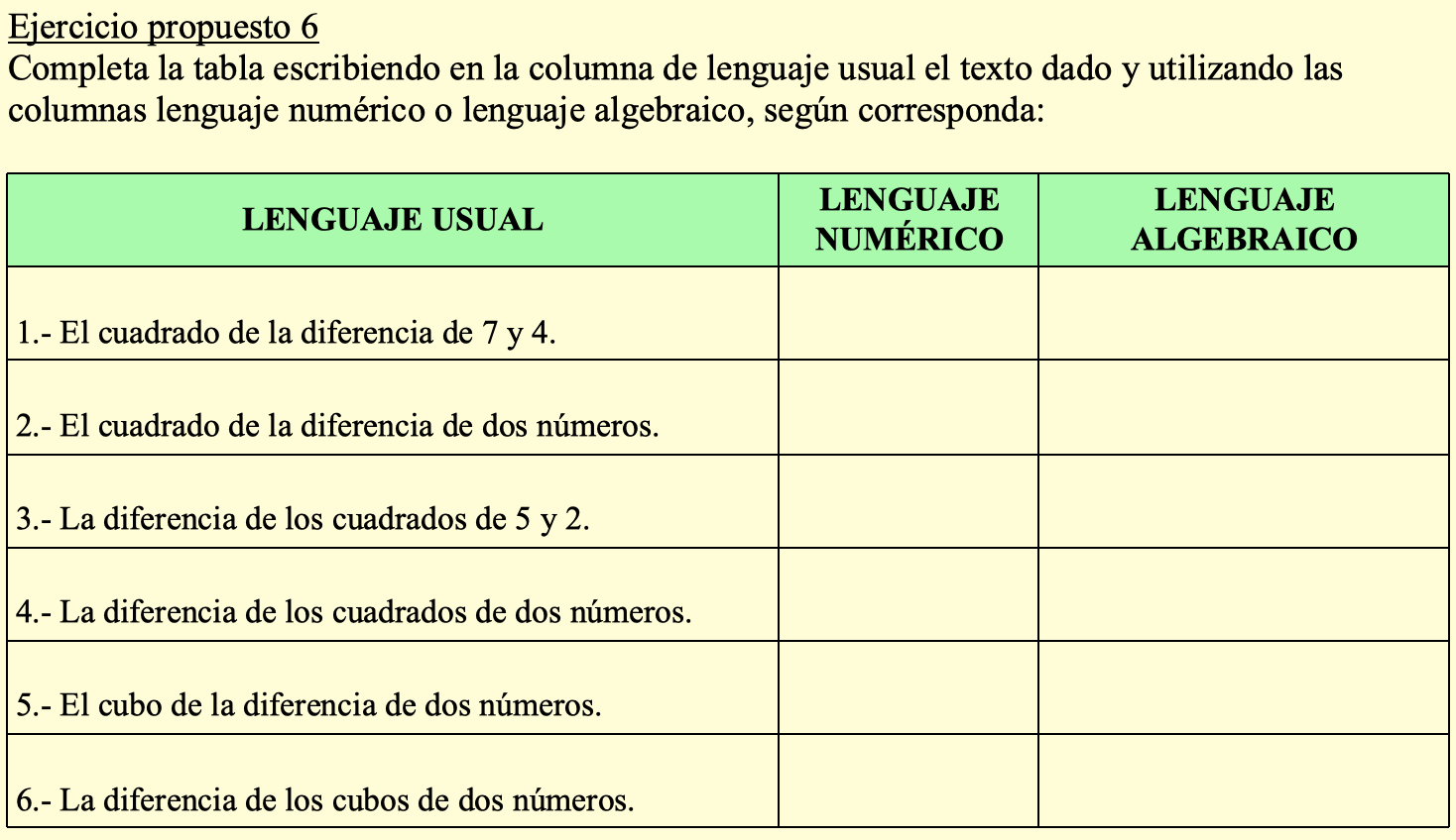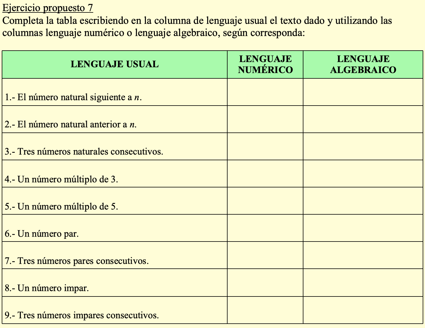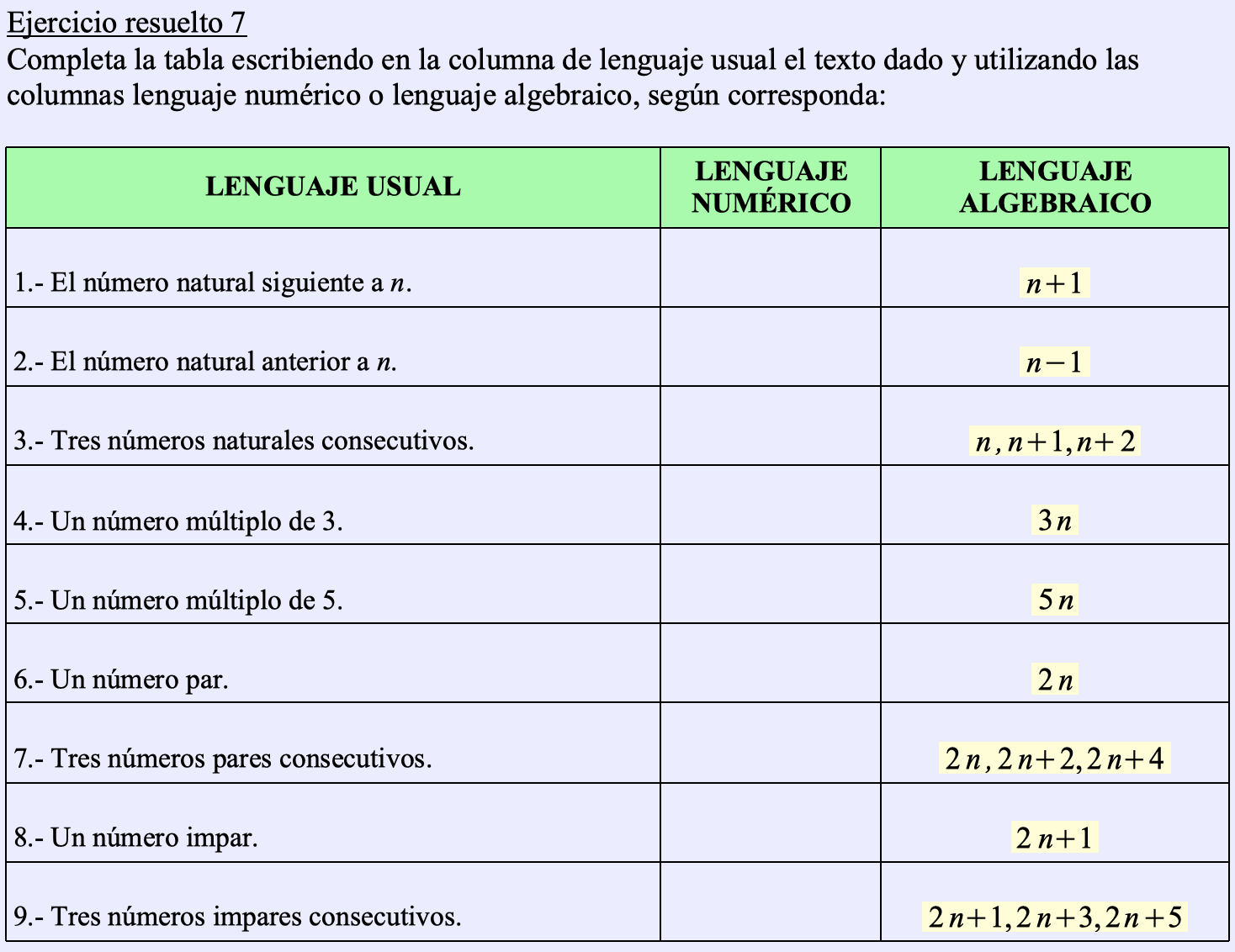 Terminamos la pregunta 1.- Lenguaje numérico y lenguaje algebraico de la Unidad didáctica 6: Ecuaciones. Sigue las instrucciones y construye los contenidos en tu cuaderno de trabajo.