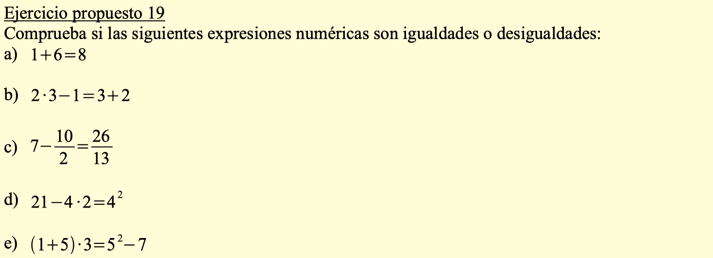 Continuamos con la pregunta 5.- Igualdades de la Unidad didáctica 6: Ecuaciones. Sigue las instrucciones y construye los contenidos en tu cuaderno de trabajo.