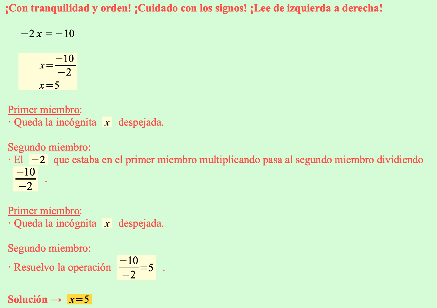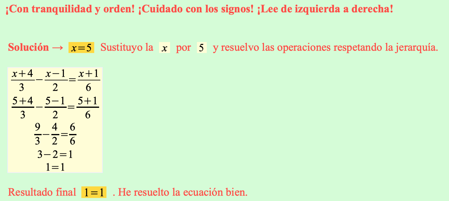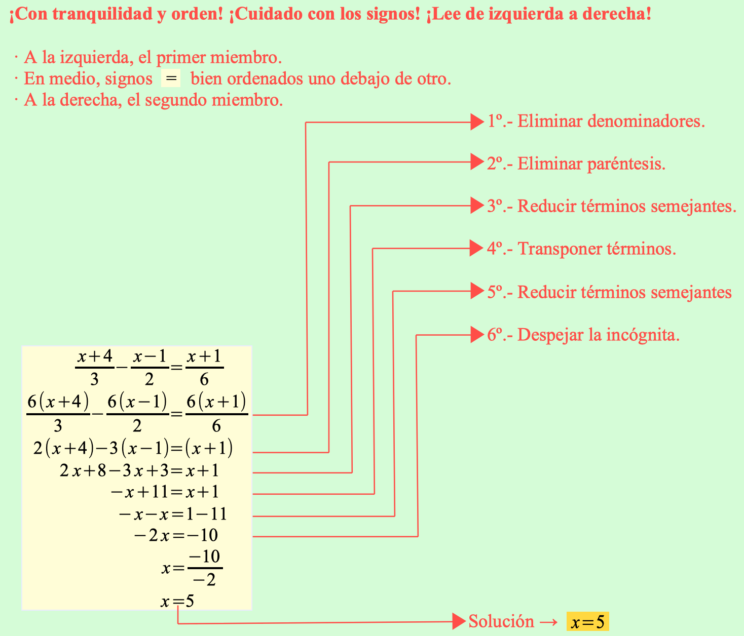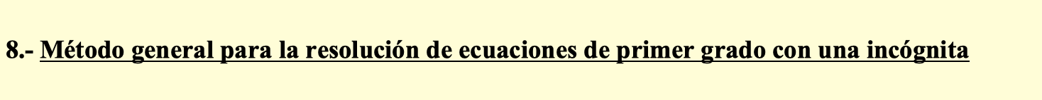 Comenzamos la pregunta 8.- Método general para la resolución de ecuaciones de primer grado con una incógnita de la Unidad didáctica 6: Ecuaciones. En esta pregunta desarrollamos un método basado en construir ecuaciones equivalentes y muy práctico para resolverlas. Sigue este método con tranquilidad, paso a paso. Al principio tendrás errores, pero sigue las instrucciones e irás cogiendo confianza.