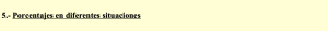 Continuamos con la pregunta 5.- Porcentajes en diferentes situaciones de la Unidad didáctica 7: Magnitudes proporcionales. Porcentajes. Sigue las instrucciones y construye los contenidos en tu cuaderno de trabajo.