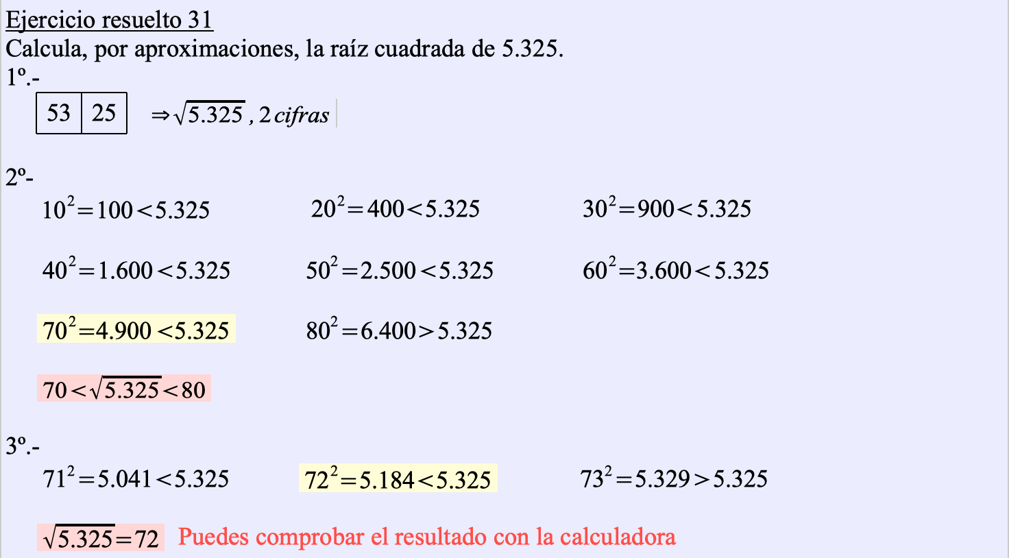 Continuamos con la pregunta 5.- Raíces cuadradas de la Unidad didáctica 3: Potencias y raíz cuadrada. Sigue las instrucciones y construye los contenidos en tu cuaderno de trabajo.