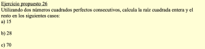 Continuamos con la pregunta 5.- Raíces cuadradas de la Unidad didáctica 3: Potencias y raíz cuadrada. Sigue las instrucciones y construye los contenidos en tu cuaderno de trabajo.