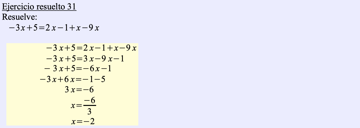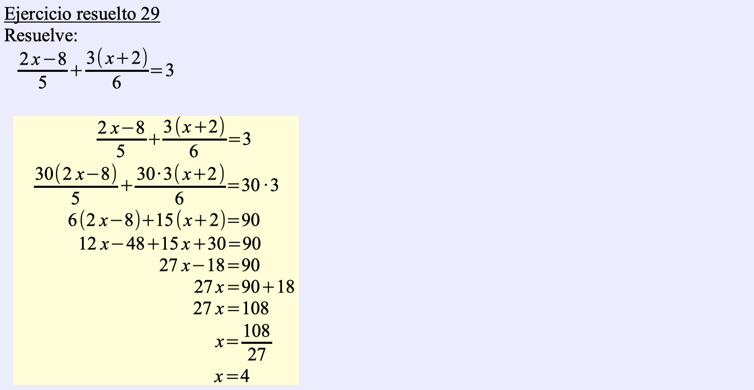 Terminamos la pregunta 4.- Método general para la resolución de ecuaciones de primer grado con una incógnita de la Unidad didáctica 6: Ecuaciones.
