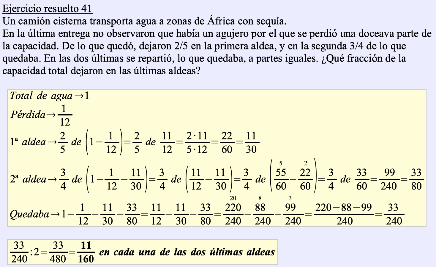 Terminamos la Unidad didáctica 2: Fracciones con la pregunta 4.- Resolución de problemas.