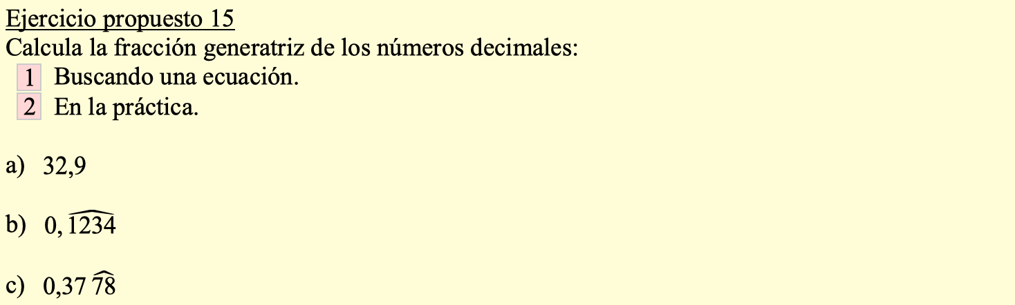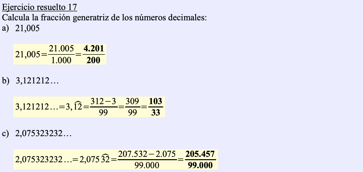 Terminamos la pregunta 2.- Fracción generatriz de un número decimal de la Unidad didáctica 3: Números decimales. Sigue las instrucciones y construye los contenidos en tu cuaderno de trabajo.