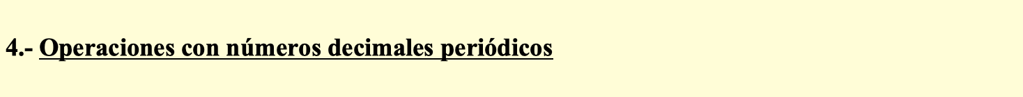 Continuamos con la pregunta 4.- Operaciones con números decimales periódicos de la Unidad didáctica 3: Números decimales. Sigue las instrucciones y construye los contenidos en tu cuaderno de trabajo.